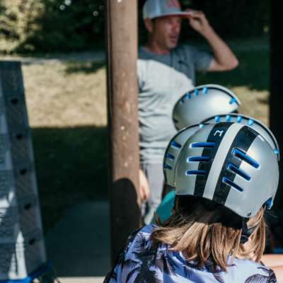 - Komplette Schutzausrüstung vorhanden: Handgelenk-, Ellbogen- sowie Knieschützer und Skatinghelme